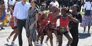 Меган и Гарри посетили местный общественный центр и пообщались с активистами, в частности с Теодорой Литхули, которая основала курсы самообороны для местных девушек. В Нянге нередки случаи насилия и чаще всего страдают женщины и дети.