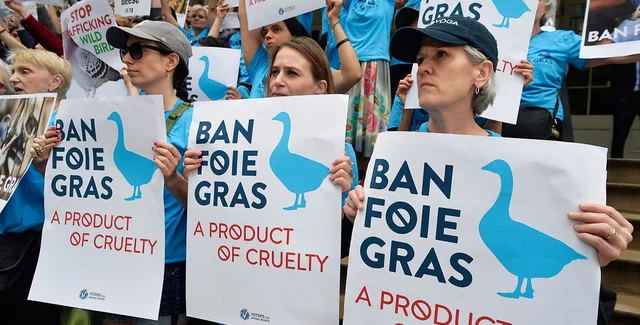 Закон поддержали защитники животных, поскольку производство блюдо связывают с жестоким обращением с животными. Птиц принудительно подвергают кормлению, вставляя в горло специальную трубку. Нарушителям принятого закона будет выставлен штраф в две тысячи долларов.