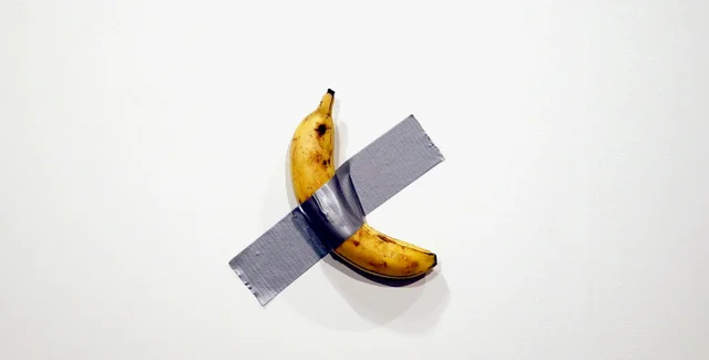 Инсталляция "Комик" итальянского художника Маурицио Каттелана стала одной из самых обсуждаемых работ на нынешнем Art Basel Miami. Банан, приклееный монтажным скотчем на стену, стал настоящей сенсацией и был продан за баснословные 120 тысяч долларов французском коллекционеру.