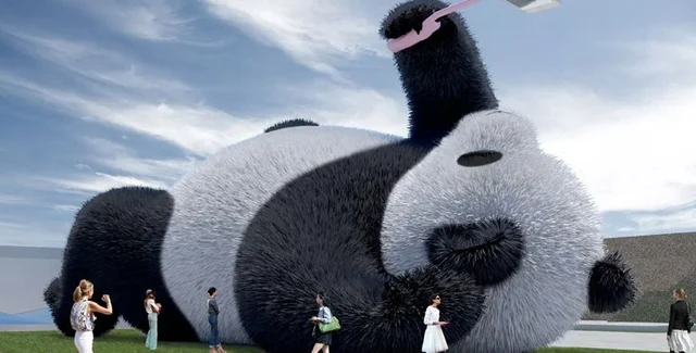 Огромное животное будет лежать на лужайке, забросив одну лапу за голову, а другой удерживая селфи-палку. Ночью экран смартфона будет светиться. Пока доступны только фото концепта и один снимок из ангара, где сооружают статую. Видно, что она из металла, а вот из чего сделают мех панды – пока не сообщают.