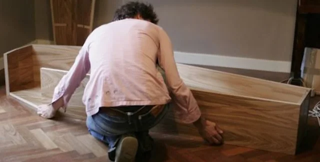 Британский дизайнер Уильям Уоррен придумал книжный шкаф-трансформер, из полок которого собирается гроб. Такой конструктор он назвал "Полки для жизни"