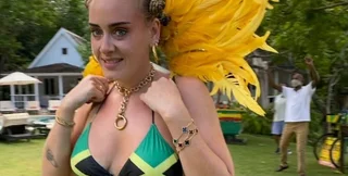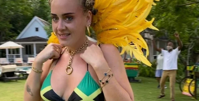 Адель надела купальник с флагом Ямайки и сделала национальную африканскую прическу под названием "узелки банту" для вечеринки в своем особняке в Беверли-Хиллз, так как карнавал отменили из-за пандемии коронавируса. "Для моего любимого лондонского карнавала", - подписала снимок певица.