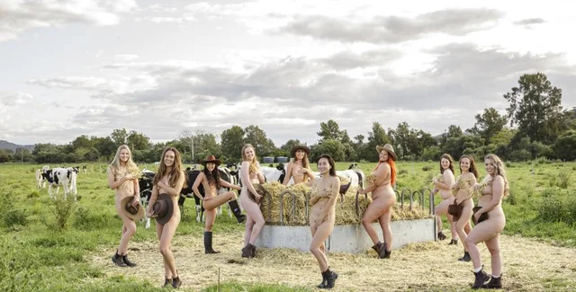 Голые австралийские студентки сфотографировались с коровами, конями и трактором