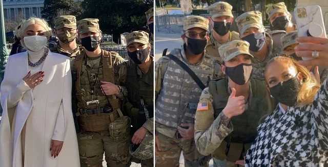 Дженнифер Лопес и Леди Гага прибыли на инаугурацию Байдена и устроили фотосессию с военными