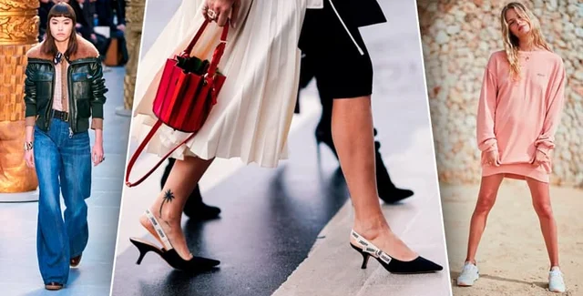 Туфли с тонким ремешком и открытой пяткой у экспертов принято называть "туфли-слингбэки". Такие туфли — отнюдь не новая тенденция. Но она оказалась очень популярной на ведущих мировых подиумах 2021. Так, мы видим тренд обуви на плоской подошве, а также на каблуках различной высоты. Такая модель имеет массу преимуществ, учитывая, что колодка такой обуви обычно очень удобна. А лодочки-слингбэки эффектно сочетаются почти с любым образом!