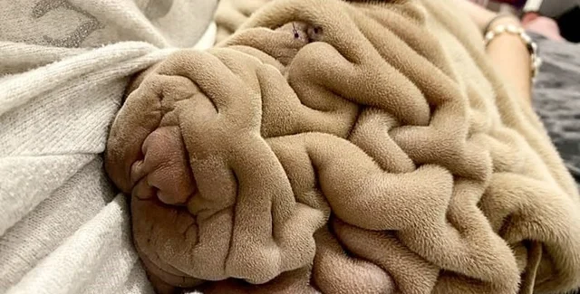 Полугодовалый щенок породы шарпей по кличке Харви стал знаменитым после того, как его фото, на котором его невозможно отличить от скомканной простыни или полотенца, попали в Сеть, передает The Daily Mail.