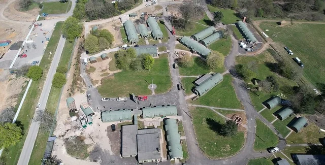Для съемок "Мастеров воздуха" на холмах Чалфонт-Сент-Джайлс, Бакингемшир, на месте заброшенного университета и отеля и строится база. Хижины и здания Ниссена воссозданы в натуральную величину, а улицы импровизированной базы дополнили многочисленными автомобилями армии США. Съемки в этой локации пройдут в 2022 году.