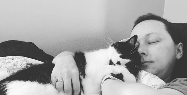"Я оглядываюсь на изменения в его поведении по отношению ко мне до того, как мне поставили диагноз "рак груди", и искренне верю, что он пытался предупредить меня о растущих в моем теле опасностях. Огги всегда любил садиться мне на руки, но он начал прижиматься более агрессивно, чем обычно, что было странно. Кот сосредоточился на моей груди, особенно на левой стороне, в течение нескольких месяцев, прежде чем я сама поняла, что происходит. Он отказывался слезать с места и казался более решительным, чем когда-либо, ему нужно было находиться только возле моей левой груди. Только когда я почувствовала уплотнение и узнала о диагнозе, я поняла, что он пытался мне сказать все это время".