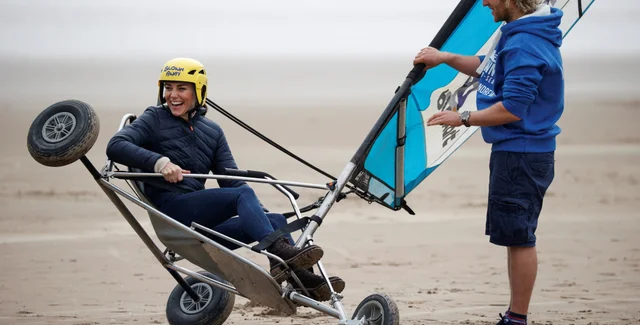 Сухопутный яхтинг, также известный как "песчаная яхта" или "сухопутный парусный спорт", включает в себя управление низким трехколесным транспортным средством, похожим на картинг, который прикреплен к парусу и приводится в движение ветром.