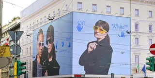 На улицах Милана появились огромные постеры с рекламой итальянского бренда стритвир-одежды премиум-класса Off-White, основателем которого является Вирджил Абло.