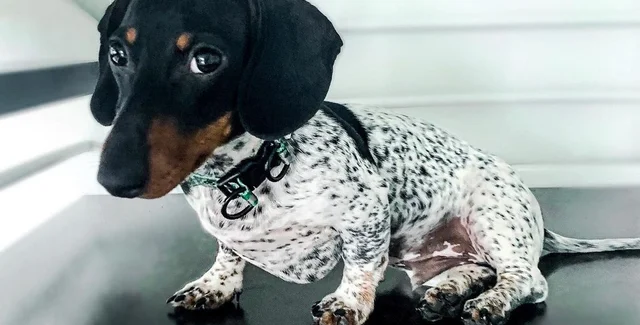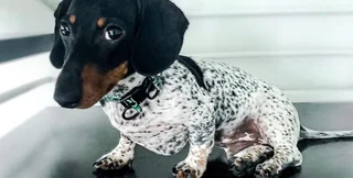 Такса по кличке Му, которая живет в Майами (США), стала популярной в Сети из-за своего необычного окраса. Если голова у пса вполне традиционная, то вот остальное тело – будто приделанное в фотошопе. Оно белого цвета в черных пятнах, и лишь в районе хвоста есть "родной" оттенок животного.