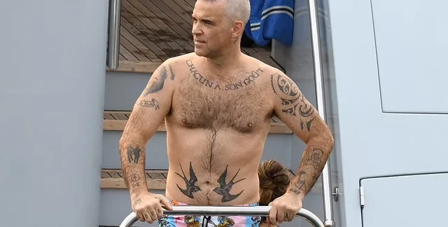 Выход в плавках: певец Робби Уильямс увез семью на отдых в Турцию