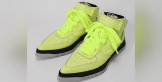 В сезоне весна-лето 2022 Михара Ясухиро предлагает женщинам примерить остроносые кроссовки разной высоты и расцветки.