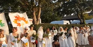 На опубликованных в Сети кадрах видно, что возраст "невест" очень разный – от молодых девушек до пожилых женщин. Однако все они объединились в едином порыве защитить природу.