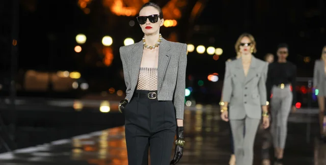 Широкие плечи и глубокие декольте: главные тренды 2022 с показа Saint Laurent на Неделе моды