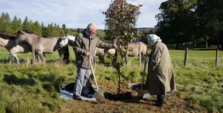 Для посадки дерева королева обула резиновые сапоги, а на голове у нее традиционно красовался платок. Когда Чарльз и его мать засыпали лунку с саженцем, принц пошутил: "Будем надеяться, что он выживет".