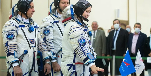 "Киноэкипаж" отправили на МКС с космодрома Байконур. Шипенко перед отправлением произнес крылатую реплику Гагарина: "Поехали!".