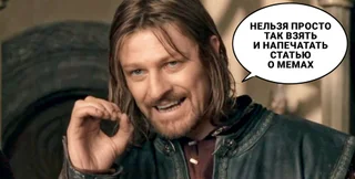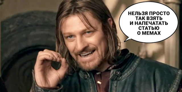 Одним из примеров долгоживущих мемов стала фраза Боромира, персонажа из "Братства кольца", первого фильма трилогии "Властелин колец". На высоком совете у эльфов Боромир, которого сыграл британский актер Шон Бин, сказал: "Нельзя вот так просто взять и войти в Мордор". Эта фраза стала невероятно плодотворным источником вдохновения для создателей мемов. Ее окончание меняли на все что угодно. Например: "Нельзя вот так просто взять и не сдать макулатуру" или "Нельзя вот так просто взять и не напиться на корпоративе". Вариаций этой фразы — огромное множество, их придумывают до сих пор, хотя фильм вышел на экраны в 2001-м. Годы спустя сам актер признал, что этот мем стал его наследием, хоть и непреднамеренным.