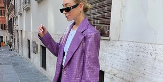 Но Соня Лисон нашла идеальный кожаный тренч осени 2021, в котором сошлись все модные тренды. Она, во время итальянского вояжа продемонстрировала кожаный тренч лавандового цвета с эффектом кожи крокодила.
