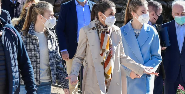 Принцесса Леонор, которая учится в Объединенном колледже Атлантики в Уэльсе, была в синих джинсах, сером джемпере, коротком черно-белом пальто с накладными карманами и в белых кроссовках, а ее сестра София – в свитере, белых джинсах и кроссовках, а также в голубом удлиненном пальто.