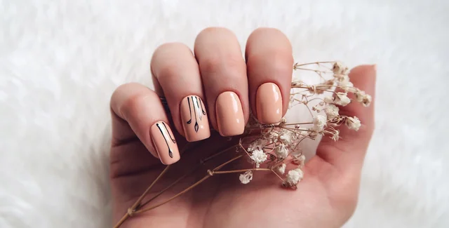 Нейтральный маникюр с тонкими прямыми, ломанными или волнистыми линиями черного, белого или яркого цвета придаст маникюру совершенно новое прочтение. Он уместно будет смотреться как в повседневном образе, так и в офисе.