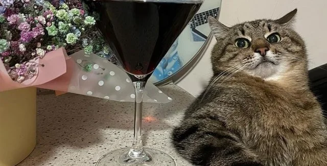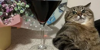 Певица опубликовала снимок, на котором Степан вальяжно возлегает у стола, облокотившись на его край лапой, а рядом стоит большой бокал вина. При этом выражение лица у кота – абсолютно равнодушное.