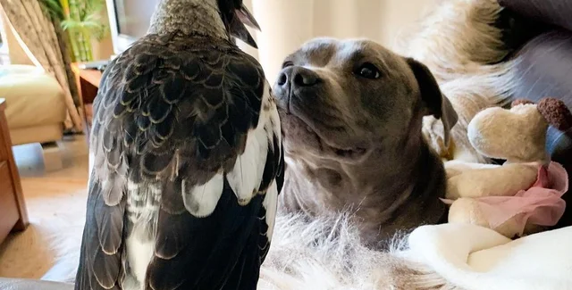 Бультерьер и сорока прославились в Instagram благодаря необычной дружбе (фото, видео)