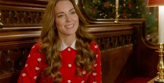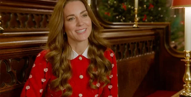 Для мероприятия Кейт Миддлтон выбрала особый праздничный наряд. На ней было красное платье-пальто Catherine Walker, традиционный наряд для герцогини. Украшением платья стал красный бант, что сделало образ герцогини похожим на упакованный новогодний подарок. Ранее она надевала пальто этого бренда, черного цвета на похороны принца Филиппа, дедушки своего мужа Уильяма, в апреле 2021 года.