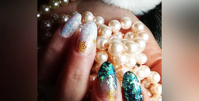 Новогодний маникюр с хлопьями юки