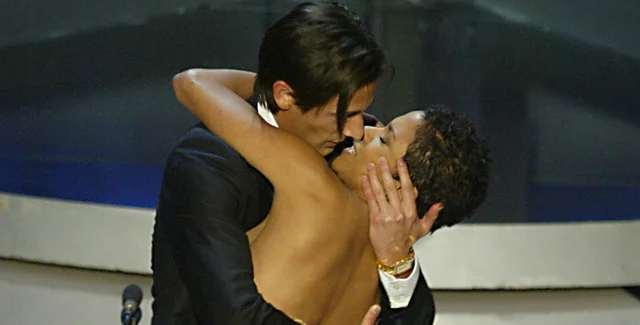 Страстный, хоть и неуместный поцелуй Эдриена Броуди и Холли Берри на церемонии "Оскар"