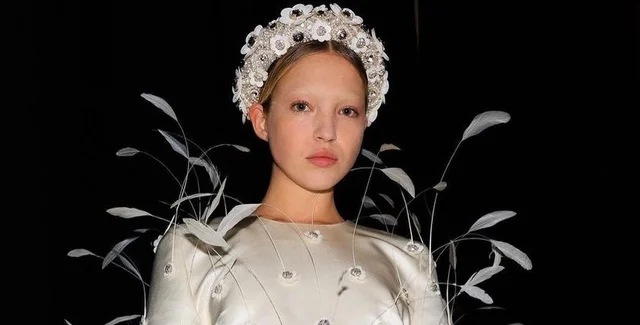 А главной звездой модного шоу стала 19-летняя Лила, закрывшая показ. Она вышла в белом мини-платье, обруче-венке с цветами и букетом.