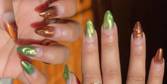 Еще одна вариация на тему ногтей в стиле "металлик". Недавно с подобным маникюром появилась рэп-исполнительница Megan Thee Stallion и тренд стал популярен.