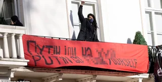 Ранее сквоттеры заявили, что называют себя "лондонскими махновцами" в честь анархиста Нестора Махно, и вывесили на здании антивоенные лозунги и флаги Украины.