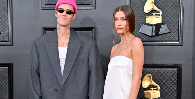 Хейли появилась в белом платье от Saint Laurent в стиле "голливудский шик", а Джастин Бибер выбрал самый трендовый бренд этого года — Balenciaga и "помолодел" на десяток лет, напомнив школьника, надевшего костюм старшего брата.