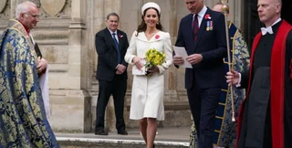 В этот раз Кейт и Уильям были без детей, но зато герцогиня заставила о себе говорить из-за своего элегантного и сдержанного наряда. Его "изюминкой" стало белое платье-пальто от Alexander McQueen и шляпка от Jane Taylor с черным бантом сзади. Образ дополнили любимые серьги покойной принцессы Дианы. Кейт часто носит украшения покойной свекрови. И никогда не снимает сапфировое кольцо, которое Уильям подарил ей на помолвку.