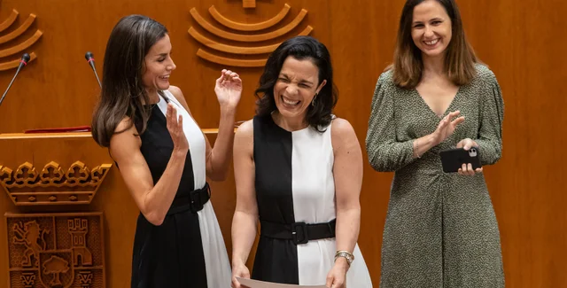 Она поприветствовала участников и встретилась с членами правления, когда прибыла на встречу. Но не обошлось без модного конфуза: оказалось, что Инмакулада Вивас Тесон, одна из членов правления, выбрала такое же платье, как и у королевы.
