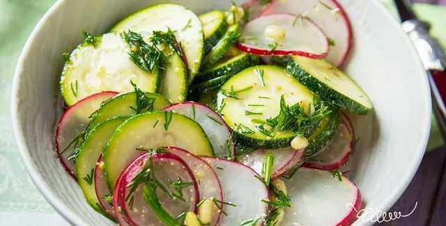 Украинский шеф-повар Евгений Клопотенко не перестает удивлять вкусными рецептами. На этот раз кулинар предлагает приготовить легкий весенний салат с цукини. По словам Клопотенко, хрустящие цукини в сочетании с редисом, укропом и кедровым орешками в салате под ароматным оливковым маслом с добавлением лимонного сока — вкусное и свежее решение. Салат отлично дополнит блюда из мяса или рыбы.