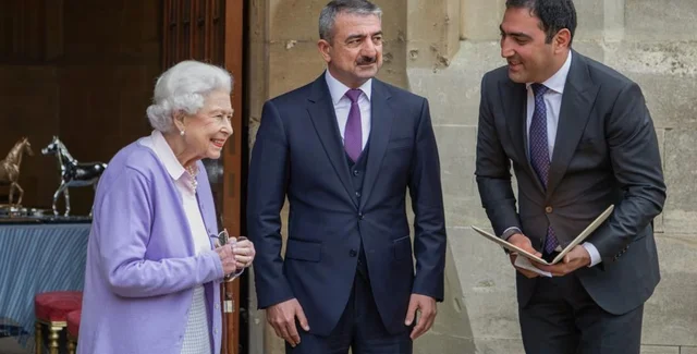 Королева приняла делегацию во главе с президентом Федерации конного спорта Азербайджана Эльчином Гулиевым в Виндзорском дворце в рамках традиционного Королевского Виндзорского конного шоу, которое проходит в Великобритании с 12 по 15 мая 2022 года.