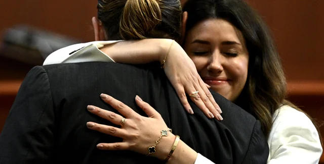 Камилла Васкес обнимает Джонни Деппа в зале суда | Фото: Getty Images