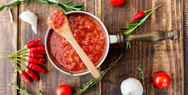 Томатный соус используют для приготовления множества блюд. Он подходит к мясу, пицце, пасте, рыбе, супам. Однако в магазинном варианте много лишних добавок — усилителей вкуса, сахара и других консервантов. Лучшая альтернатива — приготовить соус дома по рекомендации украинского шеф-повара и ресторатора Владимира Ярославского. У себя в Instagram он поделился рецептом популярного итальянского томатного соуса Неаполитано, который отлично подойдет для всех видов пасты, ризотто с морепродуктами, рыбных и мясных блюд, а также пиццы.