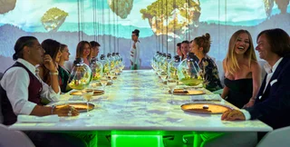В стоимость ужина входит не только еда, но и лазерное световое шоу, музыкальное сопровождение и прочие элементы шоу, доступные через гарнитуры Samsung Gear. А во время ужина видео и спецэффекты транслируются на огромные экраны и все поверхности, включая стол.