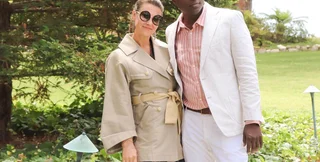 На фото она позирует в ярком платье без рукавов с рисунком, а Дурек – в элегантном костюме с кружевными вставками.