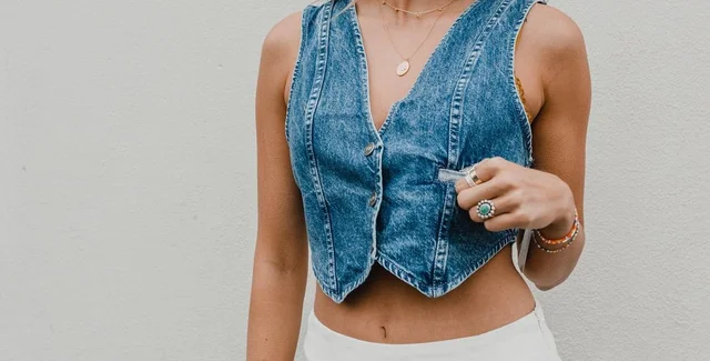 Для тех, кто не боится выглядеть экстравагантно, подойдет вариант короткой джинсовой жилетки на голое тело. Ее можно сочетать с модными в этом сезоне широкими джинсами на низкой посадке в стиле 90-х или шортами. Получится дерзко и притягательно. В таком наряде можно отправиться на прогулку или вечеринку.
