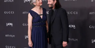 Киану был одет в классический черный костюм, который он сочетал с белой рубашкой и галстуком в разноцветную полоску, и держал на ковровой дорожке Александру за руку. Она выбрала для мероприятия ярко-красное платье и блестящие балетки.