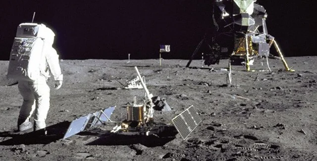 Через 15 минут на Луну вышел и Олдрин, который запомнился тем, что сразу же начал опробовать различные способы передвижения по поверхности.