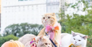 Владельцы приучали кошек к людным местам постепенно, путешествуя с ними сначала по улица Нью-Йорка, а затем васширяли географию.
