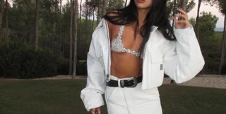 На фото знаменитость добавила к аутфиту серебряные украшения и распустила свои длинные черные волосы.