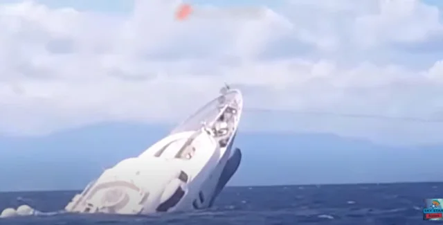 Спасательная операция началась, но по пути яхта начала сильно крениться на правый борт. На кадрах, снятых итальянской береговой охраной, запечатлено то, что произошло дальше, когда корма лодки исчезла под волнами, а вода достигла линии ее крыши.