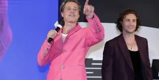 Брэд Питт в ярко-розовом костюме вышел на ковровую дорожку