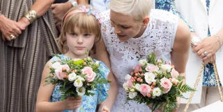 Она выбрала кружевной белоснежный брючный костюм и скромные украшения. Принц Альбер предпочел льняной пиджак без галстука, а Габриэлла и Жак появились в парных голубых нарядах.